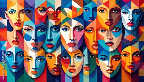 abstract, face, funky, stylised, bold, vibrant, vector, clean, shape, lighting, edge, detail, frontal, hi-res, motif, modern, graphic, illustration, playful, creative, minimal, unique, design, commercial, woman, art, cartoon, fashion, clown, fun, people, beauty, flower, hair, doll, circus, colours, halloween, smile, model, children, colourful, painting