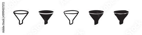 Funnel Icon Set in Various Styles, Outline, Solid, and Hand-drawn for Processing Themes