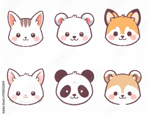 animal, funny, character, cartoon, cute, animal, illustration, set, vector, drawing, children, children, pet, design, art, baby, smile, face, collection, icon, humor, playful, doodle, colourful, happy, adorable, comic, creative, fantasy, creature, fun, friendly, mascot, expression, wild, domestic, imaginative, vignetting, head, eye, ear, tail, paw, graphic, smiley, artwork