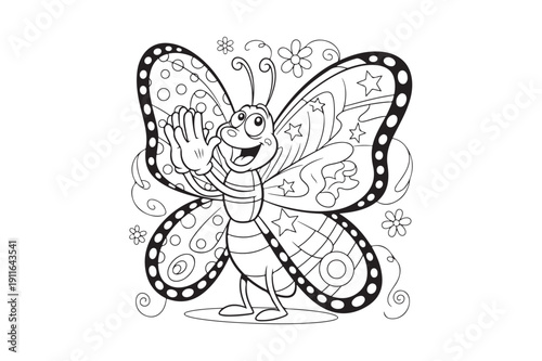nature, cartoon, funny, outline, cute, animal, character, butterfly, illustration, baby, vector, isolated, children, book, page, colouring, drawing, background, children, fun, design, white, beautiful, garden, children, children, art, graphic, bug