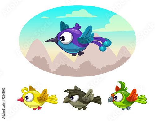 cartoon, big eye, wing, vector, animation, cute, tiny, tweet, little, blue, yellow, grey, dark, green, fantasy, isolated, canary, sparrow, parrot, crow, emotion, character, tail, game, nice, colourful, bright, set, group, collection, background, animal, zoo, feathery, birdy, chick, nestling, different, forelock, crest