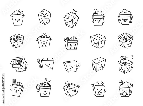 box, wok, food, vignetting, asian, meal, cute, cartoon, character, emotion, funny, charming, friendly, pretty, affable, delightful, attractive, kind, sweetie, happy, cutie, positive, satisfied, joy, smile, chopstick, rice, noodle, nubes, cookie, image, design, element, illustration, graphic, art, vector, set, collection, object, clip art, creativity, shape, drawing