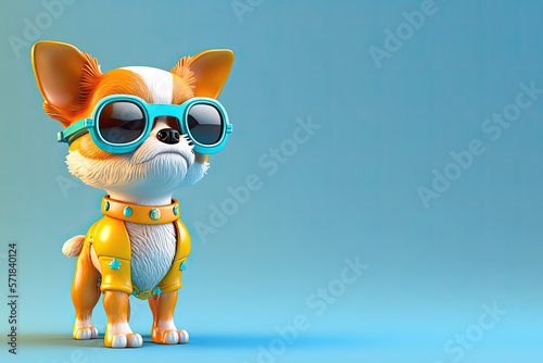 childish, dog, doggy, small, cartoon, sunglasses, children, illustration, happy, animal, blue, orange, vet, nature, funny, baby, character, cute, design, background, pet, petty, smile, wing, cheerful, clothes, wearing, mammal, young, children, love, bumble, little, icon, line, style, generative, ai