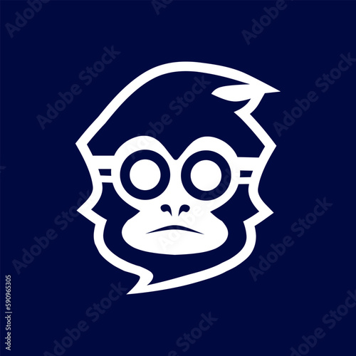 Funny funky monkey pop art logo. Colorful design with dark background. Abstract vector illustration. Isolated dark background for t-shirt, poster, clothing, merch, apparel, badge design