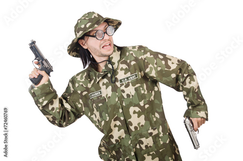 Funny soldier in military concept