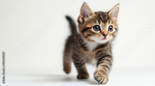 Funny Tabby Kitten, A rear view of a playful tabby kitten, isolated on a white background, showcasing its funny pose and adorable features