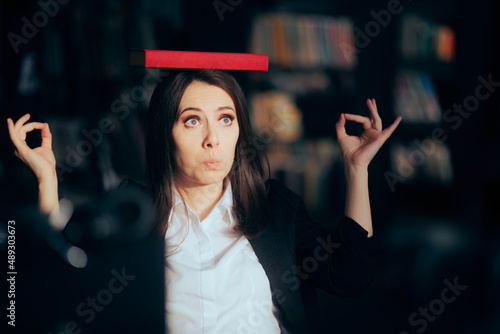Funny Woman Balancing a Book on her Head