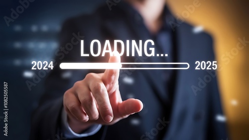 achievement, beginning, career, change, competition, download, employment, end, finance, forward, future, goal, idea, number, objective, schedule, signs, start, success, target, time, trend, virtual, calendar, countdown, date, loading, year, 2024, 2025, business, new, creative, businessman, tech, progress, new year, hand, jan, december, touch, screen