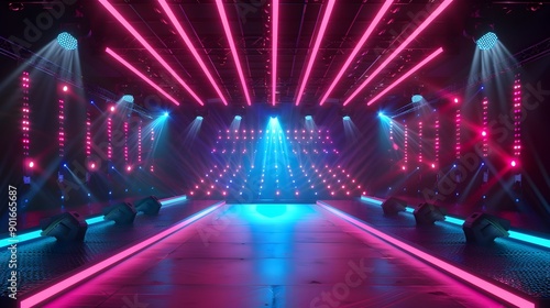 stage, concert, futuristic, neon, light, three-dimensional, background, music, energetic, innovative, abstract, lighting, design, event, entertainment, technology, digital, visualisation, performance, art, architecture, atmosphere, scene, graphic, illumination, colourful, vibrant, space, modern, dynamic