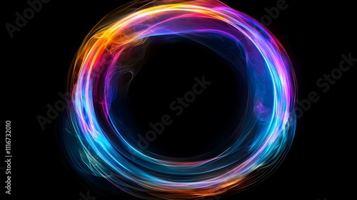 Futuristic abstract 3D holographic shape with fluid iridescent colors and glowing effects, creating a dynamic visual experience against a black background