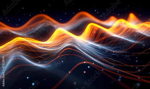 Futuristic abstract background with glowing waves. 3d audio soundwave visualization of sound. Colorful music pulse oscillation as impulse pattern. Signal waveform digital beats volume. Generative AI