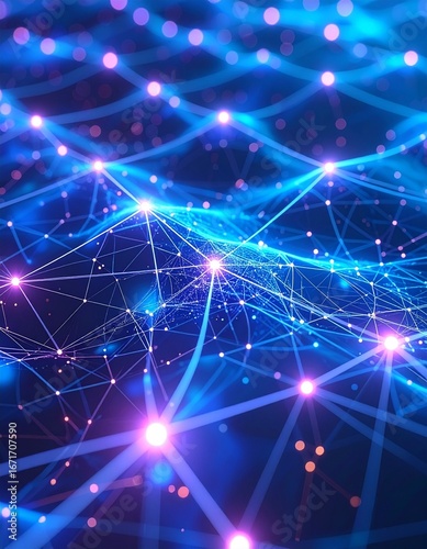 ai, neural, network, node, glowing, abstract, futuristic, digital, grid, blue, purple, tech, electronic, innovation, cyber, abstract design, concept, science, artificial intelligence