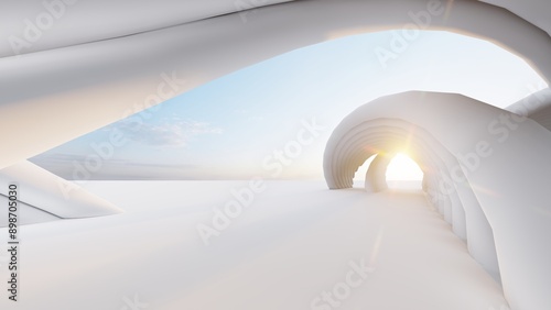 architecture, background, three-dimensional, render, abstract, design, curve, shape, arch, window, futuristic, stripes, wall, interior, technology, urban, exterior, building, floor, digital, pipe, area, art, construction, pattern, modern, light, frame, passage, empty, wallpaper, space, scene, concept, creative, banner, wave, white, sunset, style, contemporary, road, blue, sky, illustration