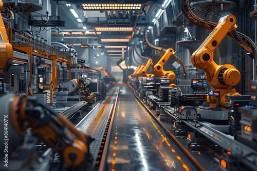 factory, robot, automation, manufacturing, industry, production, technology, futuristic, robotic, arm, machine, automated, line, plant, engineering, industrial, mechanical, innovation, efficiency, modern, metal, steel, equipment, system, process, digital, smart, work, ai, artificial intelligence, robotic