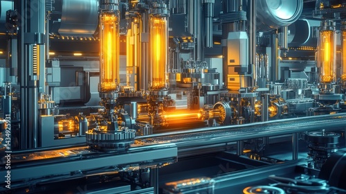 manufacturing, production, automated, machinery, factory, technology, industrial, futuristic, pipeline, glowing, tube, process, equipment, engineering, assembly, line, system, conveyer, metal, gear, pipe, component, innovation, design, modern, bright, energy, high technology, motion, efficiency, precision, robotic, advanced, complex, machine