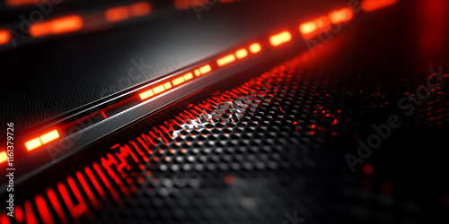 metal, grid, red, black, futuristic, light, illuminated, abstract, glowing, pattern, technology, texture, modern, design, background, surface, shiny, depth, geometric, concept, digital, industrial, perspective, line, contrast, metallic, innovation, gradient, structure, composition, shadow, detail, sleek
