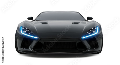Futuristic Black Sports Car Front View with Sleek Design
