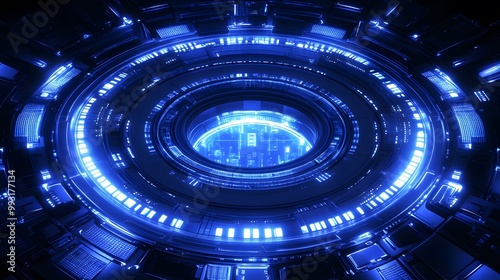 Futuristic Blue Glowing Circular Technology Interface