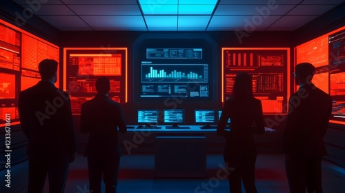 office, futuristic, team, business, policy, technology, datum, information, display, screen, dashboard, visualisation, digital, modern, workspace, interior, design, architecture, future, workplace, meeting, innovation, strategy, monitoring, planning, research, finance, management