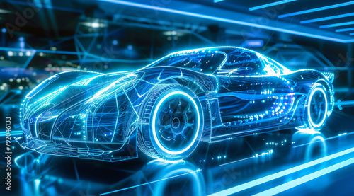 Futuristic car with blue neons