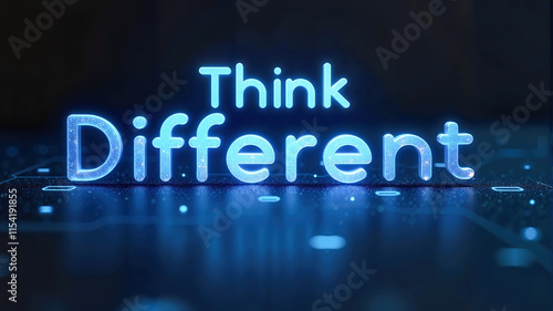 Futuristic circuit board background with "Think Different" text. Motivational slogan for learning, innovation, and personal growth