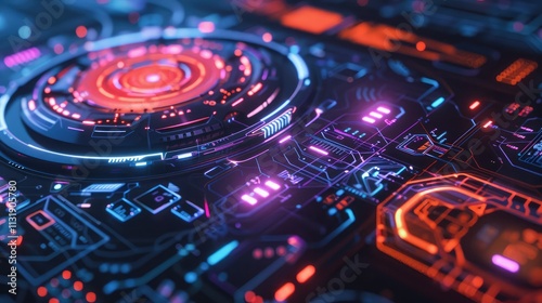 Futuristic Circuit Board with Neon Lights