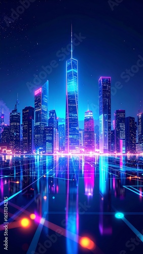 city, night, neon, futuristic, skyline, light, digital, art, design, urban, colourful, vibrant, technology, modern, city landscape, glowing, abstract, illuminated, building, skyscraper, illumination, nightlife, drawing, illustration