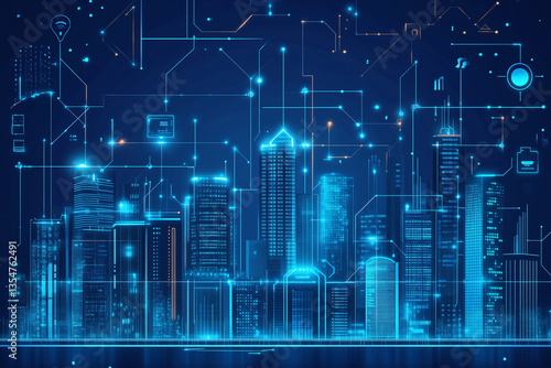 city, skyline, technology, digital, smart, urban, blue, futuristic, architecture, innovation, network, light, building, economy, seamless, connectivity, modern, design, infrastructure, datum, city landscape, night, visualisation, graphic, illustration, tech, cyber, metropolis, city lights, urban development, city landscape, modern architecture