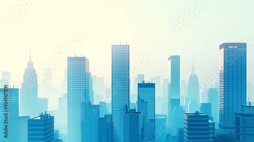 Futuristic City Skyline Illustration with Modern Skyscrapers Under Clear Sky