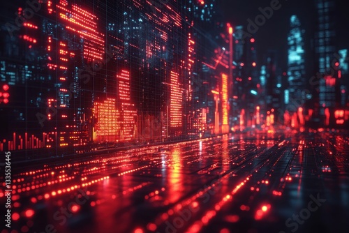 city, futuristic, night, datum, street, glowing, code, technology, urban, digital, future, neon, red, blue, abstract, architecture, light, building, design, background, illustration, graphic, three-dimensional, rendering, virtual, wallpaper, background, image, visual, light, lightshow, art, network, cyber