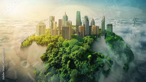 foundation, change, depict, building, block, sustainable, development, environmental, conservation, city, skyline, sky, architecture, city landscape, downtown, urban, business, skyscraper, office, view, tower, blue, asia, miami, cloud, china, day, landscape, chicago, center, photo, realistic, photorealistic, generative, technology, futuristic, city landscape, blend, lush, greenery, living, sustainability, goal, concept
