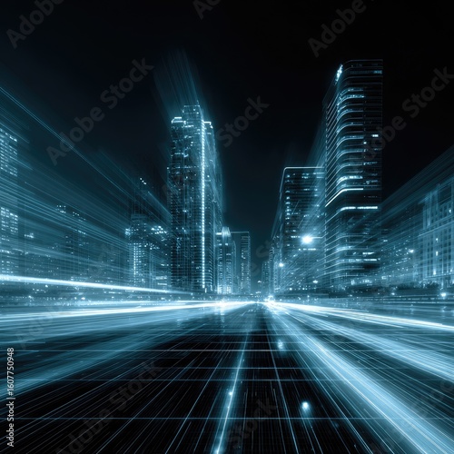 city, night, speed, technology, urban, futuristic, city landscape, drive, road, grid, building, light, modern, transportation, fast, travel, future, abstract, energy, motion, progress, innovation, digital, network, connection, street, highway, skyscraper, architecture, landscape, background, design, illustration, graphic, blue, dark, light, line, movement, dynamic, power, glow, perspective, velocity, electronic