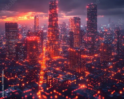 futuristic, network, city, skyline, city landscape, metropolis, urban, architecture, skyscraper, light, illumination, technology, infrastructure, connectivity, datum, communication, digital, energy, transportation, nightlife, atmosphere, vibrant, colourful, illuminated, neon, glowing, electric, modern, dynamic, innovation, progress, skyscraper, building, night, skyscape