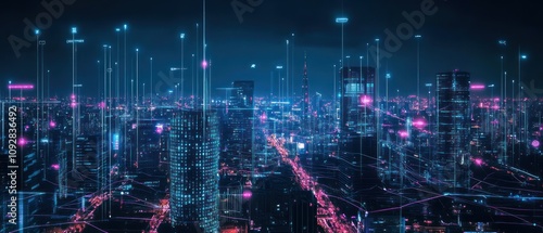 city, technology, skyline, light, digital, urban, night, architecture, network, datum, innovation, future, landscape, connectivity, visualisation, cyber, abstract, information, design, communication, glow, blue, pink, modern, environment, structure, energy, traffic, metropolis, smart, development, aesthetic, graphic, illumination, virtual, progress, creativity, nightscape, dynamic, perspective, urbanism, science, signal, infrastructure, intelligence