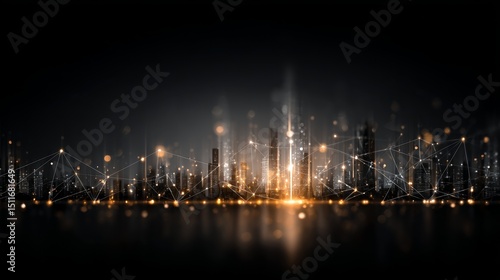 city landscape, silhouette, futuristic, datum, network, node, connection, digital, tech, gradient, glow, atmospheric, innovation, communication, infrastructure, urban, cyber, connectivity, intelligence, system, graphic, illustration, vector, art, creative