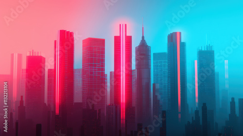 city landscape, skyline, urban, architecture, neon, light, futuristic, abstract, glow, vibrant, technology, night, colours, modern, skyscraper, illumination, design, aesthetic, tower block, graphic, digital, artistic, scenery, background, metropolis, daylight, stunning, creativity, visual, city, shape, layer, light, shadow, blue, pink, contrast, environment, modern art