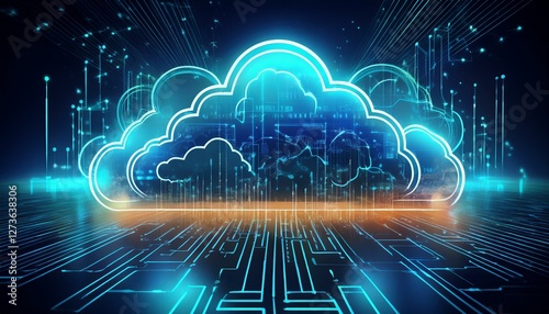 futuristic cloud illustration showcasing network connectivity and data storage