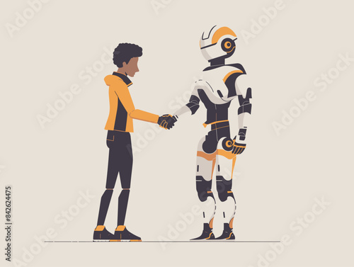 ai, human, collaboration, digital, futuristic, vector, flat, technology, innovation, connection, partnership, symbiosis, synergy, teamwork, progress, growth, development, advancement, evolution, transformation, revolution, future, modern, contemporary, cutting edge, high technology, science fiction
