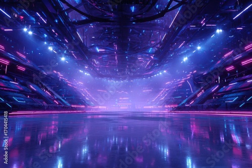 futuristic, arena, stadium, neon, science fiction, glow, light, cyber, combat, futurism, sport, battle, fight, technology, digital, modern, science fiction, spectacle, architecture, glowing, future, gaming, competition, showdown, high technology, advanced, epic, illumination, urban