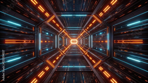 Futuristic Corridor with Orange and Blue Lights