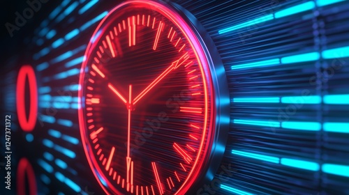 countdown, timer, digital, virtual, clock, neon, light, futuristic, technology, design, interface, background, event, urgency, time, visualisation, display, creative, modern, concept, innovation, electronic, round, circular, bright, red, blue, graphic, aesthetic, motion, energy, modernity, speed, precision, time management, advertising, marketing