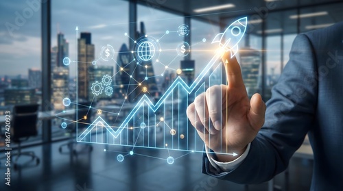 business, chart, growth, rocket, technology, finance, investment, future, success, startup, digital, city landscape, office, arrow, datum, trend, global, corporate, statistic, virtual, network, innovation, planning, development, profit, increase, graph, market, vision, financial, progress, monitoring, gear, cloud, icon, interface, solution, strategy, modern, dashboard, economic, visual, infographic