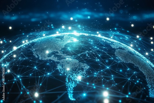 futuristic digital cover featuring a glowing global network with interconnected nodes.