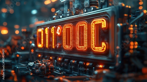 Futuristic Digital Display with Orange Lights and Metal Panels