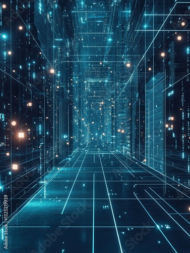 Futuristic digital grid with holographic effects showcasing innovation and technology in a high-tech environment