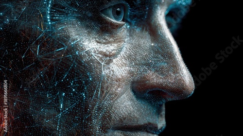 futuristic, digital, human, face, closeup, network, technology, pattern, cyber, pixel, eye, profile, male, adult, tech, blue, glowing, holographic, circuitry, detail, datum, design, virtual, innovation, modern, connection, mesh, visualisation, abstract, concept, perspective, science fiction, element, cybernetic, high technology, structure, particle, line, surface, intricate