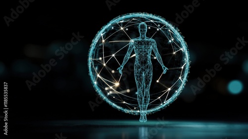 digital, human, figure, network, connection, technology, innovation, virtual, environment, glowing, sphere, datum, visualisation, creativity, representation, abstract, design, three-dimensional, futuristic, illustration, cyber, science, information, communication, analysis, aethereal, advanced, cybernetic, concept, anatomy, silhouette, light, space, interaction, pattern, energy, motion, wireframe, creative, uniqueness, graphical, humanity, existence, evolution