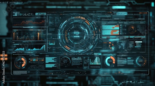 Futuristic Digital Interface Dashboard with Analytical Data Displays