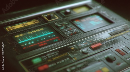 digital, interface, futuristic, style, technology, retro, design, colours, neon, vintage, aesthetic, layout, electronic, buttons, display, screen, perspective, graphic, art, imagery, innovation, creative, visual, device, model, electronic, past, nostalgia, sound, worked, control, media, contraption, look, detail, concept, architecture, interactive, illustration, representation, blend, interaction, historic, appearance