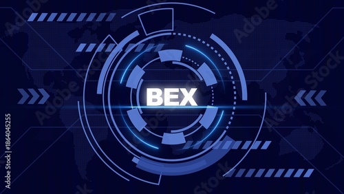 Futuristic Digital Interface with BEX Text and World Map Background technology